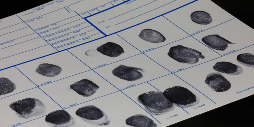 Ink fingerprinting consists of rolling the customer’s fingerprints onto a fingerprint card using what is called the “ink and roll technique”. This technique allows us to record both rolled and flat impressions onto a fingerprint card.